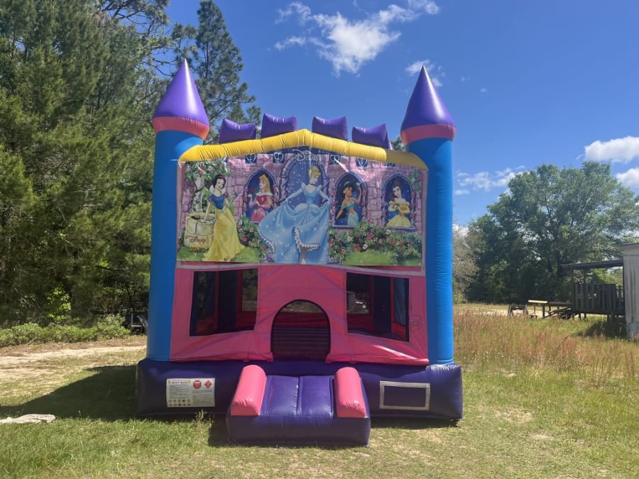 Make your next event a truly royal ball with Rip Roaring Rentals' pink and purple Disney Princess bounce house!